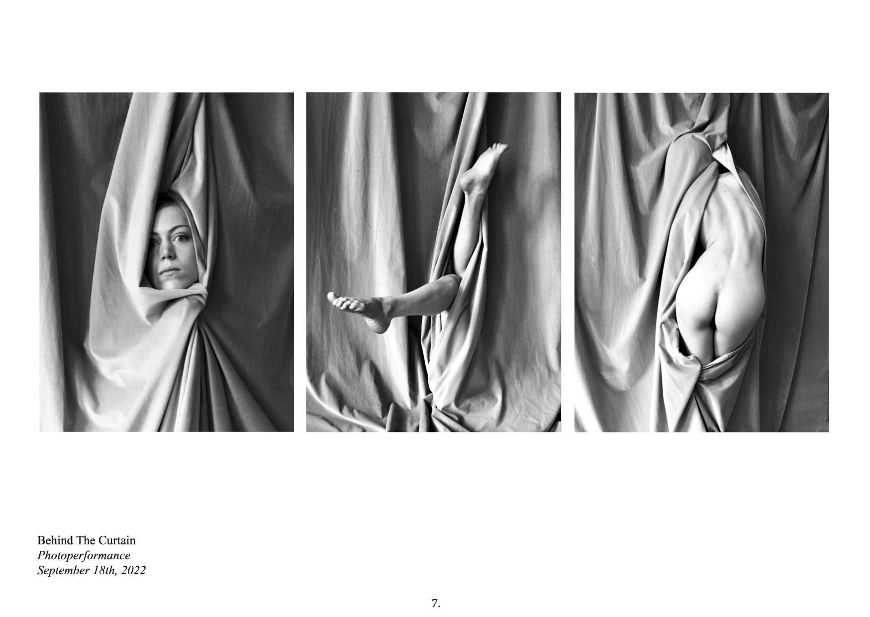 ‘ B E H I N D T H E C U R T A I N ’ – my final project for Luiza Folgeratti’s Photography and Performance class in the third semester of my graduate degree in Visual and Media Anthropology – chronicles my practical and theoretical research exploring the question of how one can approach the visual and/or embodied representation of ‘gendered ways of being’ in photo-performative settings in ways that do not perpetuate gazed and gendered looking practices.